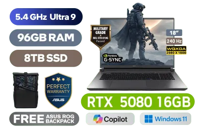 [G-SYNC] ASUS ROG STRIX G18 G815LW Intel® Core™ Ultra 9-275HX up to 5.4GHz Processor, 76MB Cache, 24x Cores, 24x Threads / 96GB DDR5 RAM / 8TB Ultra-Fast PCIe NVMe SSD / 18" WQXGA (2560x1600) 240Hz IPS-Level Display / NVIDIA 50 Series GeForce RTX 5080 16GB GDDR7 Graphics Card / Windows 11 Home (64bit) / 1080P FHD IR Camera / Intel WiFi 7 BE200 Wireless LAN / Bluetooth 5.4 / 3x USB Type-A / 2x USB Type-C (Support Thunderbolt 4 / DisplayPort / Power Delivery) / 1 x HDMI / 1 x Headphone & Microphone Combo Jack / 1x RJ45 / RGB Backlit Keyboard / 2 speakers with Dolby Atmos / Free ASUS ROG Backpack / ASUS ROG STRIX G18 G815LW Ultra 9 RTX 5080 Laptop Deal[G-SYNC] ASUS ROG STRIX G18 G815LW Intel® Core™ Ultra 9-275HX up to 5.4GHz Processor, 76MB Cache, 24x Cores, 24x Threads / 96GB DDR5 RAM / 8TB Ultra-Fast PCIe NVMe SSD / 18" WQXGA (2560x1600) 240Hz IPS-Level Display / NVIDIA 50 Series GeForce RTX 5080 16GB GDDR7 Graphics Card / Windows 11 Home (64bit) / 1080P FHD IR Camera / Intel WiFi 7 BE200 Wireless LAN / Bluetooth 5.4 / 3x USB Type-A / 2x USB Type-C (Support Thunderbolt 4 / DisplayPort / Power Delivery) / 1 x HDMI / 1 x Headphone & Microphone Combo Jack / 1x RJ45 / RGB Backlit Keyboard / 2 speakers with Dolby Atmos / Free ASUS ROG Backpack / ASUS ROG STRIX G18 G815LW Ultra 9 RTX 5080 Laptop Deal [G815LW-U93210G0W/96GB/8TB] / 3 YEARS WARRANTY / [+]Get Resident Evil: Requiem with select GeForce RTX 50 Series (Standard Edition)+ FREE DELIVERY !