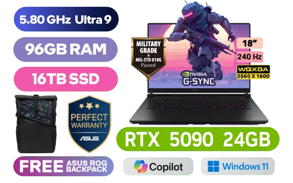 [G-SYNC] ASUS ROG Strix SCAR 18 G835 Intel® Core™ Ultra 9-275HX up to 5.40GHz Processor, 36MB Cache, 24x Cores, 24x Threads / 96GB DDR5 RAM / 16TB Ultra-Fast PCIe NVMe SSD / 18" WQXGA (2560 x 1600) 240Hz Anti-Glare Display / NVIDIA 50 Series GeForce RTX 5090 24GB GDDR7 Graphics Dedicated Graphics Card / Windows 11 Home (64bit) / 1080P FHD IR Camera / Tri-Band Wi-Fi 7 Wireless LAN / Dual Bluetooth 5.4 / 3x USB Type-A / 2x USB Type-C / 1 x HDMI / 1 x Headphone & Microphone Audio Combo Jack / 1x RJ45 / Per-key RGB Backlit Keyboard / 4 speakers with Smart AMP technology / FREE ASUS ROG Backpack / ASUS ROG Strix SCAR 18 G835 Core Ultra 9 RTX 5090 Gaming Laptop Deal[G-SYNC] ASUS ROG Strix SCAR 18 G835 Intel® Core™ Ultra 9-275HX up to 5.40GHz Processor, 36MB Cache, 24x Cores, 24x Threads / 96GB DDR5 RAM / 16TB Ultra-Fast PCIe NVMe SSD / 18" WQXGA (2560 x 1600) 240Hz Anti-Glare Display / NVIDIA 50 Series GeForce RTX 5090 24GB GDDR7 Graphics Dedicated Graphics Card / Windows 11 Home (64bit) / 1080P FHD IR Camera / Tri-Band Wi-Fi 7 Wireless LAN / Dual Bluetooth 5.4 / 3x USB Type-A / 2x USB Type-C / 1 x HDMI / 1 x Headphone & Microphone Audio Combo Jack / 1x RJ45 / Per-key RGB Backlit Keyboard / 4 speakers with Smart AMP technology / FREE ASUS ROG Backpack / ASUS ROG Strix SCAR 18 G835 Core Ultra 9 RTX 5090 Gaming Laptop Deal [G835LX-U93220B0W/96GB/16TB] / 3 YEARS WARRANTY / [+]Get Resident Evil: Requiem with select GeForce RTX 50 Series (Standard Edition)+ FREE DELIVERY !
