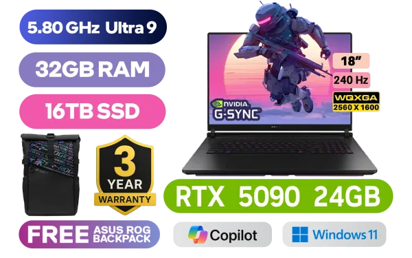 [G-SYNC] ASUS ROG Strix SCAR 18 G835 Intel® Core™ Ultra 9-275HX up to 5.40GHz Processor, 36MB Cache, 24x Cores, 24x Threads / 32GB DDR5 RAM / 16TB Ultra-Fast PCIe NVMe SSD / 18" WQXGA (2560 x 1600) 240Hz Anti-Glare Display / NVIDIA 50 Series GeForce RTX 5090 24GB GDDR7 Graphics Dedicated Graphics Card / Windows 11 Home (64bit) / 1080P FHD IR Camera / Tri-Band Wi-Fi 7 Wireless LAN / Dual Bluetooth 5.4 / 3x USB Type-A / 2x USB Type-C / 1 x HDMI / 1 x Headphone & Microphone Audio Combo Jack / 1x RJ45 / Per-key RGB Backlit Keyboard / 4 speakers with Smart AMP technology / FREE ASUS ROG Backpack / ASUS ROG Strix SCAR 18 G835 Core Ultra 9 RTX 5090 Gaming Laptop Deal[G-SYNC] ASUS ROG Strix SCAR 18 G835 Intel® Core™ Ultra 9-275HX up to 5.40GHz Processor, 36MB Cache, 24x Cores, 24x Threads / 32GB DDR5 RAM / 16TB Ultra-Fast PCIe NVMe SSD / 18" WQXGA (2560 x 1600) 240Hz Anti-Glare Display / NVIDIA 50 Series GeForce RTX 5090 24GB GDDR7 Graphics Dedicated Graphics Card / Windows 11 Home (64bit) / 1080P FHD IR Camera / Tri-Band Wi-Fi 7 Wireless LAN / Dual Bluetooth 5.4 / 3x USB Type-A / 2x USB Type-C / 1 x HDMI / 1 x Headphone & Microphone Audio Combo Jack / 1x RJ45 / Per-key RGB Backlit Keyboard / 4 speakers with Smart AMP technology / FREE ASUS ROG Backpack / ASUS ROG Strix SCAR 18 G835 Core Ultra 9 RTX 5090 Gaming Laptop Deal [G835LX-U93220B0W/16TB] / 3 YEARS WARRANTY / [+]Get Resident Evil Requiem with select GeForce RTX 50 Series (Standard Edition)+ FREE DELIVERY !