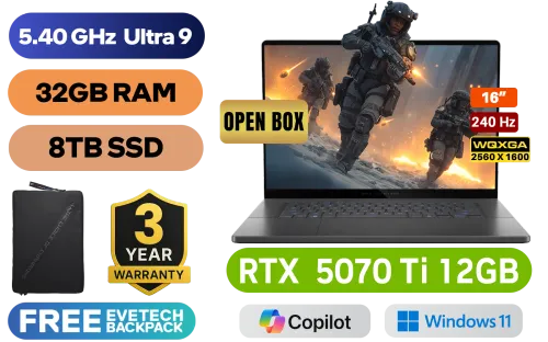 [OPEN BOX] ASUS ROG Zephyrus G16 Intel® Core™ Ultra 9 285H up to 5.40GHz Processor, 24MB Cache, 16x Cores, 16x Threads / 32GB LPDDR5X RAM / 8TB Ultra-Fast NVMe SSD / 16" WQXGA (2560 x 1600) 240Hz, OLED Display / NVIDIA 50 Series GeForce RTX 5070 Ti 12GB GDDR7 Dedicated Graphics Card / Windows 11 Home (64bit) / FHD 1080P IR Web Camera / Wi-Fi 7 BE201 Wireless LAN / Bluetooth 5.4 / 2x USB Type-A / 2x USB Type-C (Thunderbolt™ 4 with support for DisplayPort™ / power delivery) / 1x HDMI 2.1 / 1x Headphone and Microphone Audio Combo Jack / 1x MicroSD Card Reader / RGB Backlit chicklet keyboard / 4x speakers with Dolby Atmos Audio / Free ROG Sleeve / ASUS ROG Zephyrus G16 Core Ultra 9 RTX 5070 Ti Gaming Laptop[OPEN BOX] ASUS ROG Zephyrus G16 Intel® Core™ Ultra 9 285H up to 5.40GHz Processor, 24MB Cache, 16x Cores, 16x Threads / 32GB LPDDR5X RAM / 8TB Ultra-Fast NVMe SSD / 16" WQXGA (2560 x 1600) 240Hz, OLED Display / NVIDIA 50 Series GeForce RTX 5070 Ti 12GB GDDR7 Dedicated Graphics Card / Windows 11 Home (64bit) / FHD 1080P IR Web Camera / Wi-Fi 7 BE201 Wireless LAN / Bluetooth 5.4 / 2x USB Type-A / 2x USB Type-C (Thunderbolt™ 4 with support for DisplayPort™ / power delivery) / 1x HDMI 2.1 / 1x Headphone and Microphone Audio Combo Jack / 1x MicroSD Card Reader / RGB Backlit chicklet keyboard / 4x speakers with Dolby Atmos Audio / Free ROG Sleeve / ASUS ROG Zephyrus G16 Core Ultra 9 RTX 5070 Ti Gaming Laptop [GU605CR-OU93220G0W/8TB] / 3 YEARS WARRANTY / [+] GET FREE EVETECH DASH Premium Gaming Backpack / [+]Get Resident Evil: Requiem with select GeForce RTX 50 Series (Standard Edition)+ FREE DELIVERY !