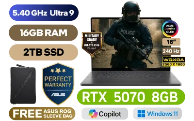ASUS ROG Zephyrus G16 GU605CP Intel® Core™ Ultra 9-285H up to 5.40GHz Processor, 24MB Cache, 16x Cores, 16x Threads / 16GB LPDDR5X RAM / 2TB Ultra-Fast NVMe SSD / 16" 2.5K (2560 x 1600) 240Hz OLED Display / NVIDIA 50 Series GeForce RTX 5070 8GB GDDR7 Dedicated Graphics Card / Windows 11 Home (64bit) / 1080P FHD IR Camera / Wi-Fi 7 BE201 Wireless LAN / Bluetooth 5.4 / 2x USB Type-A / 2x USB Type-C / 1x HDMI 2.1 / 1x Audio And Microphone Combo Jack / 1x SD Card Reader / White Backlit chicklet keyboard / Dolby Atmos Audio with AI noise-canceling technology / ASUS ROG Zephyrus G16 Ultra 9 RTX 5070 Gaming LaptopASUS ROG Zephyrus G16 GU605CP Intel® Core™ Ultra 9-285H up to 5.40GHz Processor, 24MB Cache, 16x Cores, 16x Threads / 16GB LPDDR5X RAM / 2TB Ultra-Fast NVMe SSD / 16" 2.5K (2560 x 1600) 240Hz OLED Display / NVIDIA 50 Series GeForce RTX 5070 8GB GDDR7 Dedicated Graphics Card / Windows 11 Home (64bit) / 1080P FHD IR Camera / Wi-Fi 7 BE201 Wireless LAN / Bluetooth 5.4 / 2x USB Type-A / 2x USB Type-C / 1x HDMI 2.1 / 1x Audio And Microphone Combo Jack / 1x SD Card Reader / White Backlit chicklet keyboard / Dolby Atmos Audio with AI noise-canceling technology / ASUS ROG Zephyrus G16 Ultra 9 RTX 5070 Gaming Laptop [GU605CP-OU91610G0W/2TB] / 3 YEARS WARRANTY / [+]Get Resident Evil: Requiem with select GeForce RTX 50 Series (Standard Edition)+ FREE DELIVERY !