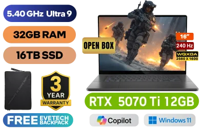 ASUS ROG Zephyrus G16 Intel® Core™ Ultra 9 285H up to 5.40GHz Processor, 24MB Cache, 16x Cores, 16x Threads / 32GB LPDDR5X RAM / 16TB Ultra-Fast NVMe SSD / 16" WQXGA (2560 x 1600) 240Hz, OLED Display / NVIDIA 50 Series GeForce RTX 5070 Ti 12GB GDDR7 Dedicated Graphics Card / Windows 11 Home (64bit) / FHD 1080P IR Web Camera / Wi-Fi 7 BE201 Wireless LAN / Bluetooth 5.4 / 2x USB Type-A / 2x USB Type-C (Thunderbolt™ 4 with support for DisplayPort™ / power delivery) / 1x HDMI 2.1 / 1x Headphone and Microphone Audio Combo Jack / 1x MicroSD Card Reader / RGB Backlit chicklet keyboard / 4x speakers with Dolby Atmos Audio / Free ROG Sleeve / ASUS ROG Zephyrus G16 Core Ultra 9 RTX 5070 Ti Gaming LaptopASUS ROG Zephyrus G16 Intel® Core™ Ultra 9 285H up to 5.40GHz Processor, 24MB Cache, 16x Cores, 16x Threads / 32GB LPDDR5X RAM / 16TB Ultra-Fast NVMe SSD / 16" WQXGA (2560 x 1600) 240Hz, OLED Display / NVIDIA 50 Series GeForce RTX 5070 Ti 12GB GDDR7 Dedicated Graphics Card / Windows 11 Home (64bit) / FHD 1080P IR Web Camera / Wi-Fi 7 BE201 Wireless LAN / Bluetooth 5.4 / 2x USB Type-A / 2x USB Type-C (Thunderbolt™ 4 with support for DisplayPort™ / power delivery) / 1x HDMI 2.1 / 1x Headphone and Microphone Audio Combo Jack / 1x MicroSD Card Reader / RGB Backlit chicklet keyboard / 4x speakers with Dolby Atmos Audio / Free ROG Sleeve / ASUS ROG Zephyrus G16 Core Ultra 9 RTX 5070 Ti Gaming Laptop [GU605CR-OU93220G0W/16TB] / 3 YEARS WARRANTY / [+] GET FREE EVETECH DASH Premium Gaming Backpack / [+]Get Resident Evil Requiem with select GeForce RTX 50 Series (Standard Edition)+ FREE DELIVERY !