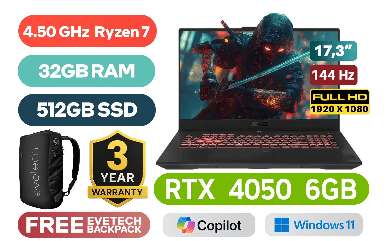 ASUS TUF Gaming A17 Ryzen 7 RTX 4050 Gaming Laptop with 32GB RAM