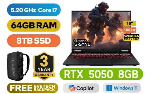 [G-SYNC] ASUS TUF Gaming F16 FX608JHR 14th Gen Intel® Core™ i7-14650HX up to 5.20GHz Processor, 30MB Cache, 16x Cores, 24x Threads / 64GB DDR5 RAM / 8TB Ultra-Fast NVMe SSD / 16" WQXGA(2560x1600) 165Hz, Anti-Glare IPS-Level Display / NVIDIA 50 Series GeForce RTX 5050 8GB GDDR7 Dedicated Graphics / Windows 11 Home (64bit) / Realtek Wi-Fi 6E 8852CE Wireless LAN / Bluetooth 5.3 / 1080P FHD IR Camera / 3 x USB Type-A / 2x USB Type-C (Supports Thunderbolt 4 / DisplayPort) / 1 x HDMI / 1x Microphone and Headphone Combo jack / 1x RJ-45 / RGB Backlit Chiclet Keyboard / Dolby Atmos Audio with AI noise-canceling / ASUS TUF Gaming F16 Intel Core i7 RTX 5050 Gaming Laptop Deal[G-SYNC] ASUS TUF Gaming F16 FX608JHR 14th Gen Intel® Core™ i7-14650HX up to 5.20GHz Processor, 30MB Cache, 16x Cores, 24x Threads / 64GB DDR5 RAM / 8TB Ultra-Fast NVMe SSD / 16" WQXGA(2560x1600) 165Hz, Anti-Glare IPS-Level Display / NVIDIA 50 Series GeForce RTX 5050 8GB GDDR7 Dedicated Graphics / Windows 11 Home (64bit) / Realtek Wi-Fi 6E 8852CE Wireless LAN / Bluetooth 5.3 / 1080P FHD IR Camera / 3 x USB Type-A / 2x USB Type-C (Supports Thunderbolt 4 / DisplayPort) / 1 x HDMI / 1x Microphone and Headphone Combo jack / 1x RJ-45 / RGB Backlit Chiclet Keyboard / Dolby Atmos Audio with AI noise-canceling / ASUS TUF Gaming F16 Intel Core i7 RTX 5050 Gaming Laptop Deal [FX608JHR-I716512G0W/64GB/8TB] / 3 YEARS WARRANTY / [+] GET FREE EVETECH NEO Premium Gaming Backpack+ FREE DELIVERY !