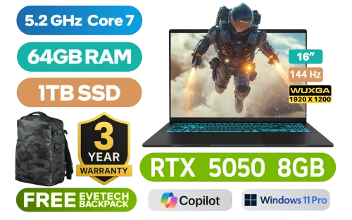 ASUS V16 Intel Core 7-240H up to 5.2GHz Processor, 24MB Cache, 10x Cores, 16x Threads / 64GB DDR5 RAM / 1TB Ultra-Fast NVMe SSD / 16" WUXGA (1920x1200) Anti-Glare 144Hz Display / NVIDIA 50 Series GeForce RTX 5050 8GB GDDR7 Dedicated Graphics / <span style="font-size: 20px; color: #00BFFF; font-weight: bold;">Windows 11 Professional (64bit)</span> / Realtek RTL8852BE Wi-Fi 6 Wireless LAN / Bluetooth 5.3 / 1080p FHD Web Camera with Privacy Shutter / 2x USB Type-A / 1x USB Type-C (Support Display Port) / 1x HDMI 2.1 / 1 x Headphone and Microphone Combo Jack / Blue Backlit Keyboard / SonicMaster Audio / ASUS V16 Core 7 RTX 5050 Gaming Laptop DealASUS V16 Intel Core 7-240H up to 5.2GHz Processor, 24MB Cache, 10x Cores, 16x Threads / 64GB DDR5 RAM / 1TB Ultra-Fast NVMe SSD / 16" WUXGA (1920x1200) Anti-Glare 144Hz Display / NVIDIA 50 Series GeForce RTX 5050 8GB GDDR7 Dedicated Graphics / Windows 11 Professional (64bit) / Realtek RTL8852BE Wi-Fi 6 Wireless LAN / Bluetooth 5.3 / 1080p FHD Web Camera with Privacy Shutter / 2x USB Type-A / 1x USB Type-C (Support Display Port) / 1x HDMI 2.1 / 1 x Headphone and Microphone Combo Jack / Blue Backlit Keyboard / SonicMaster Audio / ASUS V16 Core 7 RTX 5050 Gaming Laptop Deal [V3607VH-I71610B0X/64GB] / 3 YEARS WARRANTY / [+] GET FREE EVETECH DASH Premium Gaming Backpack+ FREE DELIVERY !