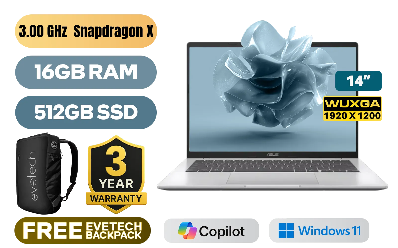 ASUS Vivobook 14 16GB/512GB Snapdragon X