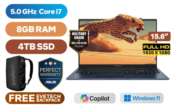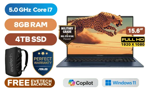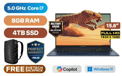 ASUS Vivobook 15 X1504VA Intel® 13th Generation Intel® Core™ i7-1355U Up to 5.0GHz Processor, 12MB Cache, 10x Cores, 12x Threads / 8GB DDR4 RAM / 4TB Ultra-Fast NVMe SSD / 15.6" FHD (1920 x 1080) Anti-Glare Display / Integrated Intel® UHD Graphics / Windows 11 Home (64bit) / Intel Wi-Fi AC9560 Wireless LAN / Bluetooth 5.3 / 720p HD Web Camera With Privacy Shutter / 3x USB Type-A / 1x USB Type-C / 1x HDMI / 1 x Headphone & Microphone Audio Combo Jack / White Backlit Chiclet Keyboard / SonicMaster Audio / ASUS Vivobook 15 X1504VA Intel® Core™ i7 Laptop DealASUS Vivobook 15 X1504VA Intel® 13th Generation Intel® Core™ i7-1355U Up to 5.0GHz Processor, 12MB Cache, 10x Cores, 12x Threads / 8GB DDR4 RAM / 4TB Ultra-Fast NVMe SSD / 15.6" FHD (1920 x 1080) Anti-Glare Display / Integrated Intel® UHD Graphics / Windows 11 Home (64bit) / Intel Wi-Fi AC9560 Wireless LAN / Bluetooth 5.3 / 720p HD Web Camera With Privacy Shutter / 3x USB Type-A / 1x USB Type-C / 1x HDMI / 1 x Headphone & Microphone Audio Combo Jack / White Backlit Chiclet Keyboard / SonicMaster Audio / ASUS Vivobook 15 X1504VA Intel® Core™ i7 Laptop Deal [X1504VA-I78512BL0W/4TB] / 3 YEARS WARRANTY / [+] GET FREE EVETECH NEO Premium Gaming Backpack / [+] GET FREE Logitech M185 Wireless Mouse+ FREE DELIVERY !