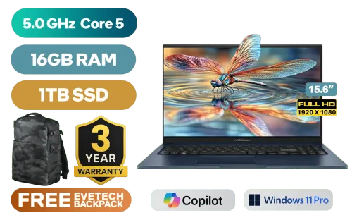 Asus Vivobook 15 X1504VAP Intel Core 5 120U up to 5.0GHz, 12MB Cache Processor, 10x Cores, 12x Threads / 16GB DDR4 RAM / 1TB Ultra-Fast NVME SSD / 15.6" FHD (1920x1080) Anti-glare IPS-Level Display / Integrated Intel® Graphics / <span style="color:blue; font-size: 17px;">Windows 11 Professional (64bit)</span> / Realtek 8851BE Wireless LAN / Bluetooth 5.2 / 720P HD Camera / 3x USB Type-A / 1x USB Type-C / 1x HDMI / 1x Microphone and Headphone Combo Jack / Kensington Lock / Non-Backlit Chicklet Keyboard / Asus Vivobook 15 X1504VAP Core 5 120U Laptop DealAsus Vivobook 15 X1504VAP Intel Core 5 120U up to 5.0GHz, 12MB Cache Processor, 10x Cores, 12x Threads / 16GB DDR4 RAM / 1TB Ultra-Fast NVME SSD / 15.6" FHD (1920x1080) Anti-glare IPS-Level Display / Integrated Intel® Graphics / Windows 11 Professional (64bit) / Realtek 8851BE Wireless LAN / Bluetooth 5.2 / 720P HD Camera / 3x USB Type-A / 1x USB Type-C / 1x HDMI / 1x Microphone and Headphone Combo Jack / Kensington Lock / Non-Backlit Chicklet Keyboard / Asus Vivobook 15 X1504VAP Core 5 120U Laptop Deal [X1504VAP-I516512BL0X-3YRS/1TB] / 3 YEARS WARRANTY / [+] GET FREE EVETECH DASH Premium Gaming Backpack+ FREE DELIVERY !