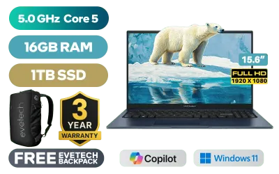 Asus Vivobook 15 X1504VAP Intel Core 5 120U up to 5.0GHz, 12MB Cache Processor, 10x Cores, 12x Threads / 16GB DDR4 RAM / 1TB Ultra-Fast NVME SSD / 15.6" FHD (1920x1080) IPS-Glare Display / Integrated Intelยฎ Graphics / Windows 11 Home (64bit) / Realtek WiFi 6E 8851BE Wireless LAN / Bluetooth 5.3 / 720P HD Camera / 3x USB Type-A / 1x USB Type-C / 1x HDMI / 1x Microphone and Headphone Combo Jack / White Backlit Keyboard / SonicMaster Audio / Asus Vivobook 15 X1504VAP Intel Core 5 120U Laptop DealAsus Vivobook 15 X1504VAP Intel Core 5 120U up to 5.0GHz, 12MB Cache Processor, 10x Cores, 12x Threads / 16GB DDR4 RAM / 1TB Ultra-Fast NVME SSD / 15.6" FHD (1920x1080) IPS-Glare Display / Integrated Intelยฎ Graphics / Windows 11 Home (64bit) / Realtek WiFi 6E 8851BE Wireless LAN / Bluetooth 5.3 / 720P HD Camera / 3x USB Type-A / 1x USB Type-C / 1x HDMI / 1x Microphone and Headphone Combo Jack / White Backlit Keyboard / SonicMaster Audio / Asus Vivobook 15 X1504VAP Intel Core 5 120U Laptop Deal [X1504VAP-I516512BL3W/1TB] / 3 YEARS WARRANTY / [+] GET FREE EVETECH NEO Premium Gaming Backpack+ FREE DELIVERY !