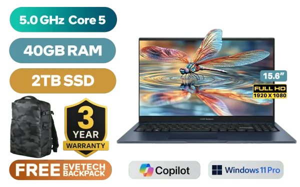 Asus Vivobook 15 X1504VAP Intel Core 5 120U up to 5.0GHz, 12MB Cache Processor, 10x Cores, 12x Threads / 40GB DDR4 RAM / 2TB Ultra-Fast NVME SSD / 15.6" FHD (1920x1080) Anti-glare IPS-Level Display / Integrated Intel® Graphics / <span style="color:blue; font-size: 17px;">Windows 11 Professional (64bit)</span> / Realtek 8851BE Wireless LAN / Bluetooth 5.2 / 720P HD Camera / 3x USB Type-A / 1x USB Type-C / 1x HDMI / 1x Microphone and Headphone Combo Jack / Kensington Lock / Non-Backlit Chicklet Keyboard / Asus Vivobook 15 X1504VAP Core 5 120U Laptop DealAsus Vivobook 15 X1504VAP Intel Core 5 120U up to 5.0GHz, 12MB Cache Processor, 10x Cores, 12x Threads / 40GB DDR4 RAM / 2TB Ultra-Fast NVME SSD / 15.6" FHD (1920x1080) Anti-glare IPS-Level Display / Integrated Intel® Graphics / Windows 11 Professional (64bit) / Realtek 8851BE Wireless LAN / Bluetooth 5.2 / 720P HD Camera / 3x USB Type-A / 1x USB Type-C / 1x HDMI / 1x Microphone and Headphone Combo Jack / Kensington Lock / Non-Backlit Chicklet Keyboard / Asus Vivobook 15 X1504VAP Core 5 120U Laptop Deal [X1504VAP-I516512BL0X-3YRS/40GB/2TB] / 3 YEARS WARRANTY / [+] GET FREE EVETECH DASH Premium Gaming Backpack+ FREE DELIVERY !