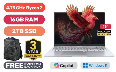 ASUS Vivobook 16 M1605NAQ AMD Ryzen 7 170 up to 4.75GHz Processor, 20MB Cache, 8x Cores, 16x Threads / 16GB DDR5 RAM / 2TB Ultra-Fast NVMe SSD / 16" WUXGA (1920x1200) Anti-Glare Display / Integrated AMD Radeon 680M Graphics / Windows 11 Home (64bit) / MediaTek Wi-Fi 6 MT7920 Wireless LAN / Bluetooth 5.4 / 720p HD Camera With Privacy Shutter / 3x USB 3.2 Type-A / 2x USB Type-C (Supports Power Delivery) / 1x HDMI / 1x Headphone and microphone Combo Jack / White Backlit Keyboard / SonicMaster Audio / ASUS Vivobook 16 M1605NAQ Ryzen 7 Laptop DealASUS Vivobook 16 M1605NAQ AMD Ryzen 7 170 up to 4.75GHz Processor, 20MB Cache, 8x Cores, 16x Threads / 16GB DDR5 RAM / 2TB Ultra-Fast NVMe SSD / 16" WUXGA (1920x1200) Anti-Glare Display / Integrated AMD Radeon 680M Graphics / Windows 11 Home (64bit) / MediaTek Wi-Fi 6 MT7920 Wireless LAN / Bluetooth 5.4 / 720p HD Camera With Privacy Shutter / 3x USB 3.2 Type-A / 2x USB Type-C (Supports Power Delivery) / 1x HDMI / 1x Headphone and microphone Combo Jack / White Backlit Keyboard / SonicMaster Audio / ASUS Vivobook 16 M1605NAQ Ryzen 7 Laptop Deal [M1605NAQ-78512S0W/16GB/2TB] / 3 YEARS WARRANTY / [+] GET FREE EVETECH DASH Premium Gaming Backpack+ FREE DELIVERY !