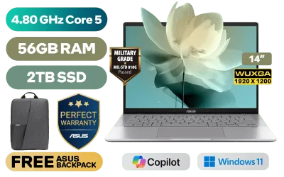 ASUS Vivobook S14 S3407VA Intel® Core™ 5-210H up to 4.80GHz Processor, 12MB Cache, 8x Cores, 12x Threads / 56GB DDR5 RAM / 2TB Ultra-Fast NVMe SSD / 14" WUXGA (1920 x 1200) Anti-Glare IPS-Level Display / Integrated Intel® Graphics / Windows 11 Home (64bit) / Realtek Wi-Fi 6 8852BE Wireless LAN / Bluetooth 5.3 / 1080p FHD IR camera With privacy shutter / 2x USB Type-A / 2x USB Type-C (Supports for Display / Power Delivery) / 1 x HDMI / 1x Microphone and Headphone Combo jack / White Backlit Chicklet Keyboard / 2x 2W Integrated Speakers / FREE Asus Backpack / ASUS Vivobook S14 S3407VA Core 5 Laptop DealASUS Vivobook S14 S3407VA Intel® Core™ 5-210H up to 4.80GHz Processor, 12MB Cache, 8x Cores, 12x Threads / 56GB DDR5 RAM / 2TB Ultra-Fast NVMe SSD / 14" WUXGA (1920 x 1200) Anti-Glare IPS-Level Display / Integrated Intel® Graphics / Windows 11 Home (64bit) / Realtek Wi-Fi 6 8852BE Wireless LAN / Bluetooth 5.3 / 1080p FHD IR camera With privacy shutter / 2x USB Type-A / 2x USB Type-C (Supports for Display / Power Delivery) / 1 x HDMI / 1x Microphone and Headphone Combo jack / White Backlit Chicklet Keyboard / 2x 2W Integrated Speakers / FREE Asus Backpack / ASUS Vivobook S14 S3407VA Core 5 Laptop Deal [S3407VA-I516512S1W/56GB/2TB] / 3 YEARS WARRANTY / [+] GET FREE Logitech M185 Wireless Mouse+ FREE DELIVERY !