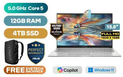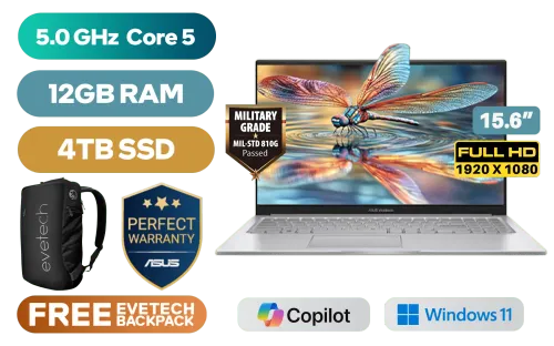 ASUS Vivobook X1504VA Intel Core 5-120U up to 5.0GHz Processor, 12MB Cache, 10x Cores, 12x Threads / 12GB DDR4 RAM / 4TB Ultra-Fast NVMe SSD / 15.6" FHD (1920 x 1080) Anti-glare Display / Integrated Intel Graphics / Windows 11 Home (64bit) / RealTek WiFi 6 8851BE Wireless LAN / Bluetooth 5.2 / 720p HD Camera with Privacy Shutter / 3x USB Type-A / 1x USB Type-C / 1x HDMI / 1x Microphone & Headphone Combo Jack / Built-in Speaker and Microphone SonicMaster Audio / 1 Year Warranty / ASUS Vivobook X1504VA Intel Core 5 Laptop DealASUS Vivobook X1504VA Intel Core 5-120U up to 5.0GHz Processor, 12MB Cache, 10x Cores, 12x Threads / 12GB DDR4 RAM / 4TB Ultra-Fast NVMe SSD / 15.6" FHD (1920 x 1080) Anti-glare Display / Integrated Intel Graphics / Windows 11 Home (64bit) / RealTek WiFi 6 8851BE Wireless LAN / Bluetooth 5.2 / 720p HD Camera with Privacy Shutter / 3x USB Type-A / 1x USB Type-C / 1x HDMI / 1x Microphone & Headphone Combo Jack / Built-in Speaker and Microphone SonicMaster Audio / 1 Year Warranty / ASUS Vivobook X1504VA Intel Core 5 Laptop Deal [X1504VAP-I58512S0W/12GB/4TB] / [+] GET FREE EVETECH NEO Premium Gaming Backpack+ FREE DELIVERY !