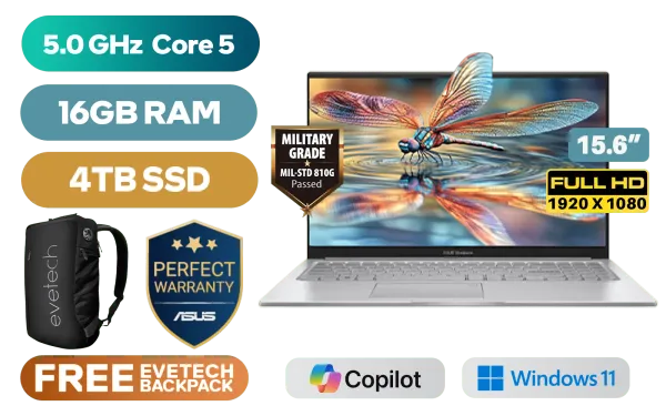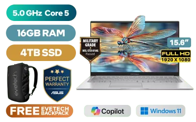 ASUS Vivobook X1504VA Intel Core 5-120U up to 5.0GHz Processor, 12MB Cache, 10x Cores, 12x Threads / 16GB DDR4 RAM / 4TB Ultra-Fast NVMe SSD / 15.6" FHD (1920 x 1080) Anti-glare Display / Integrated Intel Graphics / Windows 11 Home (64bit) / RealTek WiFi 6 8851BE Wireless LAN / Bluetooth 5.2 / 720p HD Camera with Privacy Shutter / 3x USB Type-A / 1x USB Type-C / 1x HDMI / 1x Microphone & Headphone Combo Jack / Built-in Speaker and Microphone SonicMaster Audio / 1 Year Warranty / ASUS Vivobook X1504VA Intel Core 5 Laptop DealASUS Vivobook X1504VA Intel Core 5-120U up to 5.0GHz Processor, 12MB Cache, 10x Cores, 12x Threads / 16GB DDR4 RAM / 4TB Ultra-Fast NVMe SSD / 15.6" FHD (1920 x 1080) Anti-glare Display / Integrated Intel Graphics / Windows 11 Home (64bit) / RealTek WiFi 6 8851BE Wireless LAN / Bluetooth 5.2 / 720p HD Camera with Privacy Shutter / 3x USB Type-A / 1x USB Type-C / 1x HDMI / 1x Microphone & Headphone Combo Jack / Built-in Speaker and Microphone SonicMaster Audio / 1 Year Warranty / ASUS Vivobook X1504VA Intel Core 5 Laptop Deal [X1504VAP-I58512S0W/16GB/4TB] / [+] GET FREE EVETECH NEO Premium Gaming Backpack+ FREE DELIVERY !