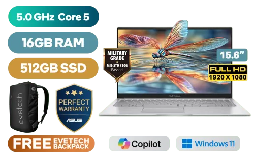 ASUS Vivobook X1504VA Intel Core 5-120U up to 5.0GHz Processor, 12MB Cache, 10x Cores, 12x Threads / 16GB DDR4 RAM / 512GB Ultra-Fast NVMe SSD / 15.6" FHD (1920 x 1080) Anti-glare Display / Integrated Intel Graphics / Windows 11 Home (64bit) / RealTek WiFi 6 8851BE Wireless LAN / Bluetooth 5.2 / 720p HD Camera with Privacy Shutter / 3x USB Type-A / 1x USB Type-C / 1x HDMI / 1x Microphone & Headphone Combo Jack / Built-in Speaker and Microphone SonicMaster Audio / 1 Year Warranty / ASUS Vivobook X1504VA Intel Core 5 Laptop DealASUS Vivobook X1504VA Intel Core 5-120U up to 5.0GHz Processor, 12MB Cache, 10x Cores, 12x Threads / 16GB DDR4 RAM / 512GB Ultra-Fast NVMe SSD / 15.6" FHD (1920 x 1080) Anti-glare Display / Integrated Intel Graphics / Windows 11 Home (64bit) / RealTek WiFi 6 8851BE Wireless LAN / Bluetooth 5.2 / 720p HD Camera with Privacy Shutter / 3x USB Type-A / 1x USB Type-C / 1x HDMI / 1x Microphone & Headphone Combo Jack / Built-in Speaker and Microphone SonicMaster Audio / 1 Year Warranty / ASUS Vivobook X1504VA Intel Core 5 Laptop Deal [X1504VAP-I58512S0W/16GB] / [+] GET FREE EVETECH NEO Premium Gaming Backpack+ FREE DELIVERY !