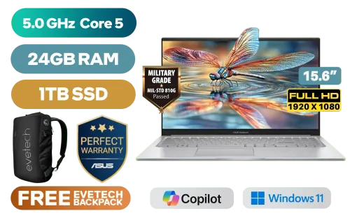 ASUS Vivobook X1504VA Intel Core 5-120U up to 5.0GHz Processor, 12MB Cache, 10x Cores, 12x Threads / 24GB DDR4 RAM / 1TB Ultra-Fast NVMe SSD / 15.6" FHD (1920 x 1080) Anti-glare Display / Integrated Intel Graphics / Windows 11 Home (64bit) / RealTek WiFi 6 8851BE Wireless LAN / Bluetooth 5.2 / 720p HD Camera with Privacy Shutter / 3x USB Type-A / 1x USB Type-C / 1x HDMI / 1x Microphone & Headphone Combo Jack / Built-in Speaker and Microphone SonicMaster Audio / 1 Year Warranty / ASUS Vivobook X1504VA Intel Core 5 Laptop DealASUS Vivobook X1504VA Intel Core 5-120U up to 5.0GHz Processor, 12MB Cache, 10x Cores, 12x Threads / 24GB DDR4 RAM / 1TB Ultra-Fast NVMe SSD / 15.6" FHD (1920 x 1080) Anti-glare Display / Integrated Intel Graphics / Windows 11 Home (64bit) / RealTek WiFi 6 8851BE Wireless LAN / Bluetooth 5.2 / 720p HD Camera with Privacy Shutter / 3x USB Type-A / 1x USB Type-C / 1x HDMI / 1x Microphone & Headphone Combo Jack / Built-in Speaker and Microphone SonicMaster Audio / 1 Year Warranty / ASUS Vivobook X1504VA Intel Core 5 Laptop Deal [X1504VAP-I58512S0W/24GB/1TB] / [+] GET FREE EVETECH NEO Premium Gaming Backpack+ FREE DELIVERY !