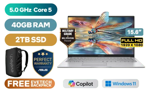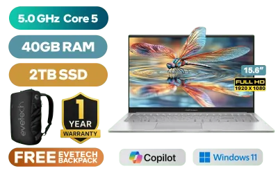 ASUS Vivobook X1504VA Intel Core 5-120U up to 5.0GHz Processor, 12MB Cache, 10x Cores, 12x Threads / 40GB DDR4 RAM / 2TB Ultra-Fast NVMe SSD / 15.6" FHD (1920 x 1080) Anti-glare Display / Integrated Intel Graphics / Windows 11 Home (64bit) / RealTek WiFi 6 8851BE Wireless LAN / Bluetooth 5.2 / 720p HD Camera with Privacy Shutter / 3x USB Type-A / 1x USB Type-C / 1x HDMI / 1x Microphone & Headphone Combo Jack / Built-in Speaker and Microphone SonicMaster Audio / 1 Year Warranty / ASUS Vivobook X1504VA Intel Core 5 Laptop DealASUS Vivobook X1504VA Intel Core 5-120U up to 5.0GHz Processor, 12MB Cache, 10x Cores, 12x Threads / 40GB DDR4 RAM / 2TB Ultra-Fast NVMe SSD / 15.6" FHD (1920 x 1080) Anti-glare Display / Integrated Intel Graphics / Windows 11 Home (64bit) / RealTek WiFi 6 8851BE Wireless LAN / Bluetooth 5.2 / 720p HD Camera with Privacy Shutter / 3x USB Type-A / 1x USB Type-C / 1x HDMI / 1x Microphone & Headphone Combo Jack / Built-in Speaker and Microphone SonicMaster Audio / 1 Year Warranty / ASUS Vivobook X1504VA Intel Core 5 Laptop Deal [X1504VAP-I58512S0W/40GB/2TB] / [+] GET FREE EVETECH NEO Premium Gaming Backpack+ FREE DELIVERY !
