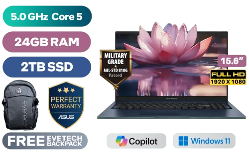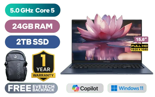 ASUS Vivobook X1504VAP Intel Core 5-120U up to 5.0GHz Processor, 12MB Cache, 10x Cores, 12x Threads / 24GB DDR4 RAM / 2TB Ultra-Fast NVMe SSD / 15.6" FHD (1920 x 1080) Anti-glare Display / Integrated Intel Graphics / Windows 11 Home / RealTek WiFi 6 8851BE Wireless LAN / Bluetooth 5.2 / 720p HD Camera with Privacy Shutter / 3x USB Type-A / 1x USB Type-C / 1x HDMI / 1x Microphone & Headphone Combo Jack / Built-in Speaker and Microphone with SonicMaster Audio / 1 Year Warranty / ASUS Vivobook X1504VAP Intel Core 5 Laptop DealASUS Vivobook X1504VAP Intel Core 5-120U up to 5.0GHz Processor, 12MB Cache, 10x Cores, 12x Threads / 24GB DDR4 RAM / 2TB Ultra-Fast NVMe SSD / 15.6" FHD (1920 x 1080) Anti-glare Display / Integrated Intel Graphics / Windows 11 Home / RealTek WiFi 6 8851BE Wireless LAN / Bluetooth 5.2 / 720p HD Camera with Privacy Shutter / 3x USB Type-A / 1x USB Type-C / 1x HDMI / 1x Microphone & Headphone Combo Jack / Built-in Speaker and Microphone with SonicMaster Audio / 1 Year Warranty / ASUS Vivobook X1504VAP Intel Core 5 Laptop Deal [X1504VAP-I58512Bl2W/24GB/2TB] / [+] GET FREE EVETECH FLUX Premium Gaming Backpack+ FREE DELIVERY !