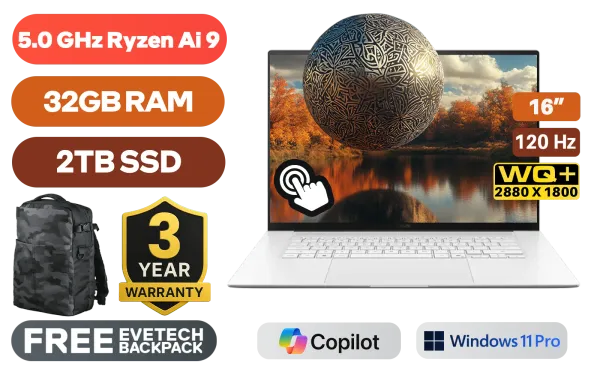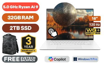 [TOUCHSCREEN] ASUS Zenbook S16 UM5606GA Ryzen AI 9-465 up to 5.0GHz Processor, 34MB Cache, 10x Cores, 20x Threads / 32GB LPDDR5X RAM / 2TB Ultra-Fast NVMe SSD / 16" WQ+ (2880x1800) 120Hz OLED Display / Integrated AMD Radeon 880 Graphics / <span style="font-size: 20px; color: #00BFFF; font-weight: bold;">Windows 11 Professional (64bit)</span> / MediaTek WiFi 7 MT7925S Wireless LAN / Bluetooth 5.4 / FHD IR Web Camera / 1x USB Type-A / 2x USB Type-C (DisplayPort / Power Delivery) / 1x HDMI / 1x Headphone & Microphone Combo Jack / SD Card Reader / White Backlit Keyboard / Built-in Speaker and Microphone / FREE ASUS Sleeve / ASUS Zenbook S16 UM5606GA Ryzen AI 9 Laptop Deal[TOUCHSCREEN] ASUS Zenbook S16 UM5606GA Ryzen AI 9-465 up to 5.0GHz Processor, 34MB Cache, 10x Cores, 20x Threads / 32GB LPDDR5X RAM / 2TB Ultra-Fast NVMe SSD / 16" WQ+ (2880x1800) 120Hz OLED Display / Integrated AMD Radeon 880 Graphics / Windows 11 Professional (64bit) / MediaTek WiFi 7 MT7925S Wireless LAN / Bluetooth 5.4 / FHD IR Web Camera / 1x USB Type-A / 2x USB Type-C (DisplayPort / Power Delivery) / 1x HDMI / 1x Headphone & Microphone Combo Jack / SD Card Reader / White Backlit Keyboard / Built-in Speaker and Microphone / FREE ASUS Sleeve / ASUS Zenbook S16 UM5606GA Ryzen AI 9 Laptop Deal [UM5606GA-O93220W0X] / 3 YEARS WARRANTY / [+] GET FREE EVETECH DASH Premium Gaming Backpack+ FREE DELIVERY !