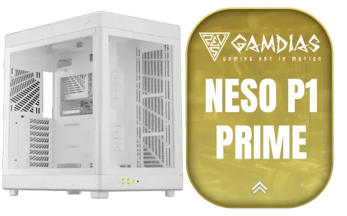 Gamdias Neso P1 Prime Lifestyle E-ATX Gaming Case - White / Modular Orientation / Full Panoramic Display / Supports Motherboards up to E-ATX / Trapezoid Shaped for Horizontal Desktop and Vertical Tower Setup, No Fans Included / NESO-P1-WW