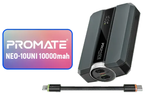 Promate Neo 10Uni 10000mAh Ultra Compact Power Bank Grey