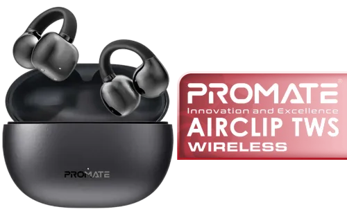 Promate AudioFit™ Open Ear Clip On TWS Earbuds with IntelliTouch - Black / Open Wearable Stereo / True Wireless / Up To 28 hours of Music Playtime / IPX4 water-resistance / AirClip.Black / AirClip.Black