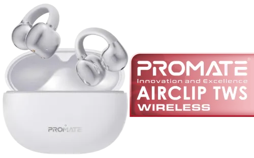Promate AudioFit™ Open Ear Clip On TWS Earbuds with IntelliTouch - White / Open Wearable Stereo / True Wireless / Up To 28 hours of Music Playtime / IPX4 water-resistance / AirClip.White / AirClip.White