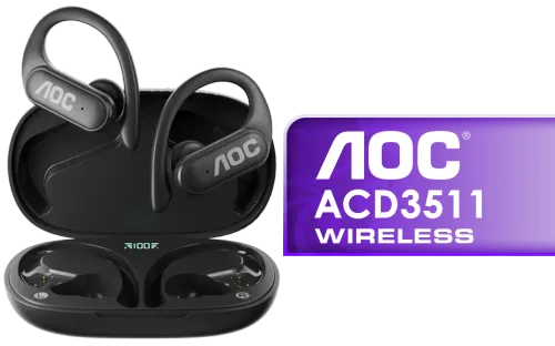 AOC ACD3511 Wireless Bluetooth Earphones - Black / Over-Ear Design / Built-In Microphone for Clear Communication / Charging Case / Bluetooth 5.0 / ACD3511BK/00 / ACD3511BK/00
