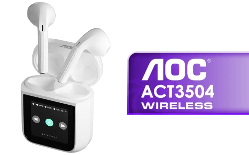 AOC ACT3504 Wireless Bluetooth Earphones - White / White HD LED display / Built-In Microphone for Clear Communication / Compact Design / ACT3504WT/00 / ACT3504WT/00