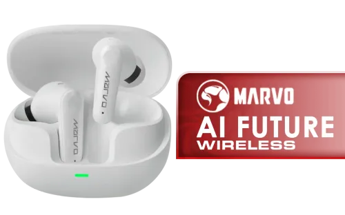 MARVO TS9389 AI Future Wireless Earphones - White / Smart Touch Control / Type-C Fast Charging / Low Latency / Long Battery Life / Support Translation and Noise Reduction Toggle / TWS-TS9389-WT / TWS-TS9389-WT