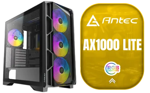 Antec AX1000 Lite ARGB Mid-Tower Gaming Case / Geometric Front Panel with Bottom-Up Ventilation / 4 Pre-Installed 140mm ARGB PWM Fans / Supports Motherboards up to E-ATX / Dual 360mm Radiator Support / Tool-Free Full-View Tempered Glass Side Panel / Up to 9 Fans Simultaneously / 0-761345-10245-2 / 0-761345-10245-2