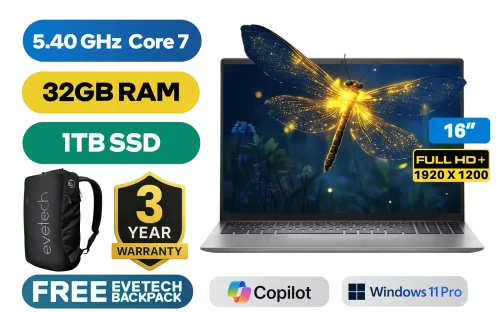 DELL Vostro 16 5640 Intel® Core™ 7-150U up to 5.40GHz Processor, 12MB Smart Cache, 10x Core, 12x Threads / 32GB DDR5 RAM / 1TB Ultra-Fast NVMe SSD / 16" FHD+ 1920x1200 Anti-Glare IPS-Level Display / Intel Integrated Graphics / <span style="font-size: 20px; color: #00BFFF; font-weight: bold;">Windows 11 Professional (64bit)</span> / Realtek RTL8852BE Wi-Fi 6 Wireless LAN / Bluetooth 5.2 / 2 x USB Type-A / 1 x USB Type-C /1 x HDMI 1.4b / 1x RJ45 Ethernet LAN / 1x SD Card Reader / Integrated Web Camera / 1x Audio and Microphone Combo Jack / White Backlit Keyboard / DELL Vostro 16 5640 Intel® Core™ 7-150U Laptop DealDELL Vostro 16 5640 Intel® Core™ 7-150U up to 5.40GHz Processor, 12MB Smart Cache, 10x Core, 12x Threads / 32GB DDR5 RAM / 1TB Ultra-Fast NVMe SSD / 16" FHD+ 1920x1200 Anti-Glare IPS-Level Display / Intel Integrated Graphics / Windows 11 Professional (64bit) / Realtek RTL8852BE Wi-Fi 6 Wireless LAN / Bluetooth 5.2 / 2 x USB Type-A / 1 x USB Type-C /1 x HDMI 1.4b / 1x RJ45 Ethernet LAN / 1x SD Card Reader / Integrated Web Camera / 1x Audio and Microphone Combo Jack / White Backlit Keyboard / DELL Vostro 16 5640 Intel® Core™ 7-150U Laptop Deal [N1001VNB5640EMEA01/32GB/1TB] / 3 YEARS WARRANTY / [+] GET FREE EVETECH NEO Premium Gaming Backpack+ FREE DELIVERY !