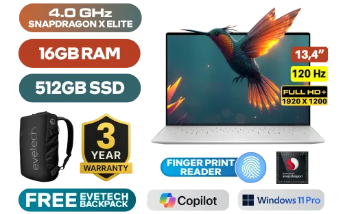 Dell XPS 13 9345 Snapdragon X Elite X1E-80-100 up to 4.0GHz Processor, 42MB Cache, 12x Cores / 16GB LPDDR5X RAM / 512GB Ultra-Fast NVMe SSD / 13.4" FHD+ (1920x1200) 120Hz Anti-Glare Display/ Qualcomm Adreno Graphics / <span style="font-size: 20px; color: #00BFFF; font-weight: bold;">Windows 11 Professional (64bit)</span> / FHD 1080p Web Camera with Dual Array Microphone / Qualcomm FastConnect 7800 Wi-Fi 7 Wireless LAN / Bluetooth 5.4 / Platinum Backlit Keyboard / Fingerprint Reader / 2 x USB Type-C USB4 (Power Delivery/DisplayPort) / 2W x 4 Dual Qualcomm speakers / 3 Years Warranty / Dell XPS 13 9345 X Elite Laptop DealDell XPS 13 9345 Snapdragon X Elite X1E-80-100 up to 4.0GHz Processor, 42MB Cache, 12x Cores / 16GB LPDDR5X RAM / 512GB Ultra-Fast NVMe SSD / 13.4" FHD+ (1920x1200) 120Hz Anti-Glare Display/ Qualcomm Adreno Graphics / Windows 11 Professional (64bit) / FHD 1080p Web Camera with Dual Array Microphone / Qualcomm FastConnect 7800 Wi-Fi 7 Wireless LAN / Bluetooth 5.4 / Platinum Backlit Keyboard / Fingerprint Reader / 2 x USB Type-C USB4 (Power Delivery/DisplayPort) / 2W x 4 Dual Qualcomm speakers / 3 Years Warranty / Dell XPS 13 9345 X Elite Laptop Deal [NBDEX9345XE1651211PE] / 3 YEARS WARRANTY / [+] GET FREE EVETECH NEO Premium Gaming Backpack+ FREE DELIVERY !