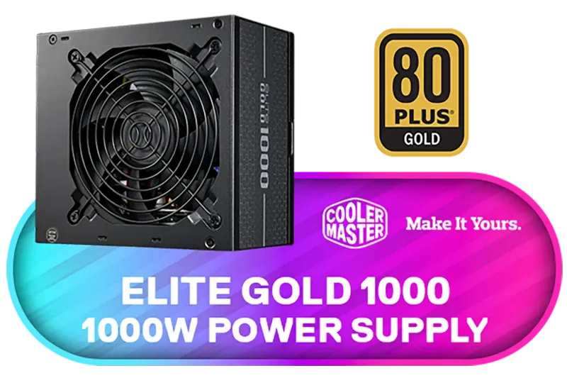 Cooler Master Elite Gold 1000 1000W 240V Power Supply / Quiet long-life FDB fan / 80 Plus Gold efficiency / Ideal for RTX 50 GPUs / MPW-A001-AFAG-BEU