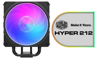 Cooler Master Hyper 212 3DHP Black ARGB Air Cooler / Superior Thermal Performance with 3DHP Heat Pipe Technology / Includes Mobius 120mm Fan / 2050 RPM Fan Speed / Supports Intel LGA 1851, 1700, 1200, 1151, 1150, 1155, 1156 & AMD AM5, AM4 Sockets / MAY-T2HP-217PA-R1