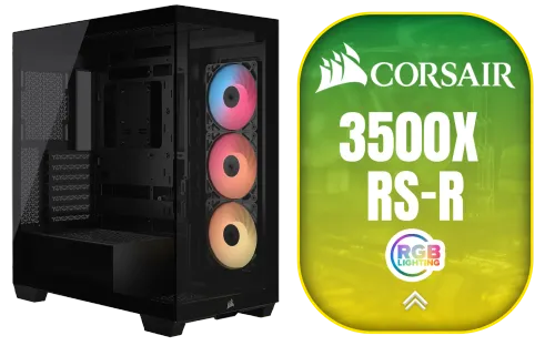 CORSAIR 3500X RS-R ARGB Mid-Tower PC Case - Black / Wraparound Tempered Glass Panels / 3× RS120-R ARGB Fans Included / Optimized Airflow with Side, Roof & PSU Fan Mounting / Builder-Friendly Design for Custom PCs / Radiator Support up to 360mm / CC-9011322-WW