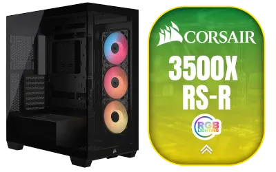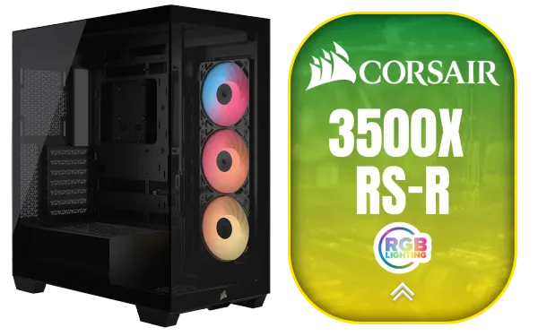 CORSAIR 3500X RS-R ARGB Mid-Tower PC Case - Black / Wraparound Tempered Glass Panels / 3× RS120-R ARGB Fans Included / Optimized Airflow with Side, Roof & PSU Fan Mounting / Builder-Friendly Design for Custom PCs / Radiator Support up to 360mm / CC-9011322-WW