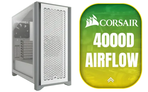 Corsair 4000D Airflow Tempered Glass Mid-Tower ATX Gaming Case - White / High-Airflow Front Panel / RapidRoute Cable Management / Supports Motherboards up to ATX / Two Included 120mm Fans(Non RGB) / Fits up to 6x 120mm or 4x 140mm Cooling Fans / Fits up to 2x SSDs and 2x HDDs / CC-9011201-WW / CC-9011201-WW