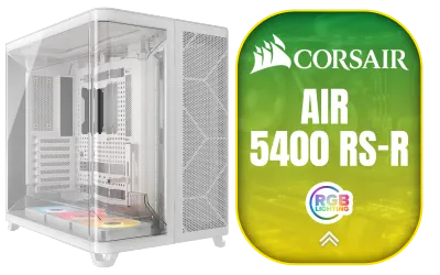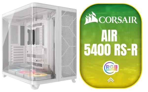 CORSAIR AIR 5400 RS-R ARGB Mid-Tower PC Case - White / Triple-Chamber Design for Advanced Cooling / Dedicated CPU Cooling Chamber / Dual Airflow Ducts for Optimized Air Circulation / Dual Curved Tempered Glass French Doors / 3× RS-R 120mm PWM ARGB Fans Included / RapidRoute 2.0 Cable Management / Reverse Motherboard Compatibility / Radiator Support up to 360mm / CC-9011319-WW + FREE DELIVERY !