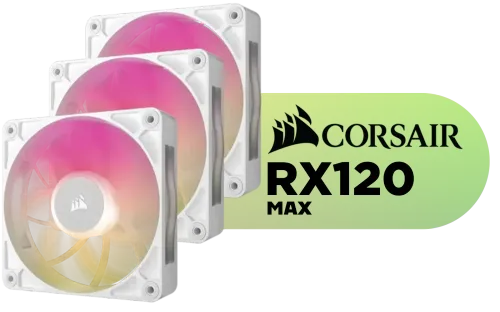 Corsair iCUE LINK RX120 Max RGB 120mm PWM Thick Fans Starter Kit - White / Magnetic dome bearing / Up to 2,000 RPM Fan Speed / Eight RGB LEDs / CO-9051038-WW / CO-9051038-WW + FREE DELIVERY !