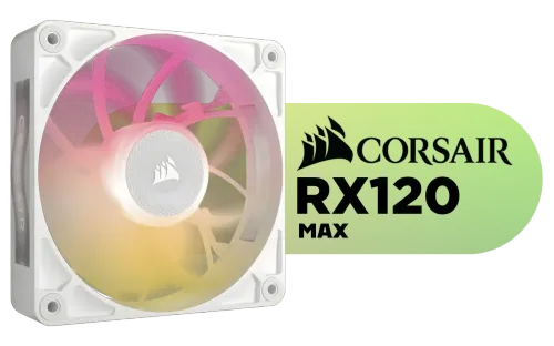 Corsair iCUE LINK RX120 MAX RGB 120mm PWM Single Fan Expansion - White / High Static Pressure / Magnetic Dome Bearing / Eight RGB LEDs with Side Window / CO-9051037-WW / CO-9051037-WW