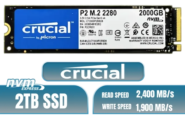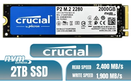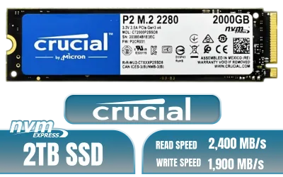Crucial P2 2TB PCIe M.2 SSD Solid State Drive / Up to 2,400 MB/s Read Speed / Up to 1,900 MB/s Write Speed / 1.5 Million Hours MTTF / Operating Temperature 0°C To 70°C / Advanced Data Integrity And Thermal Protection Features / Integrated Power Loss Immunity / CT2000P2SSD8-SN + FREE DELIVERY !
