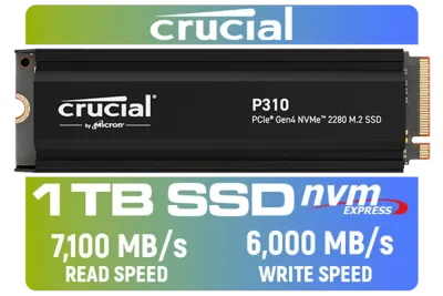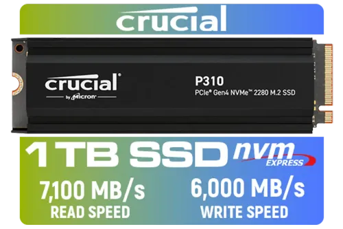 Crucial P310 1TB M2 NVMe SSD with Heatsink