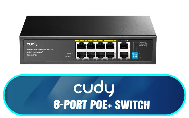 CUDY FS1010PG 8-Port PoE+ Switch — 120W, 250m Extend