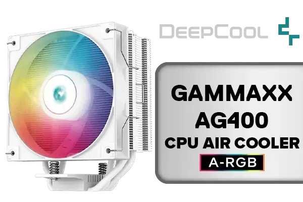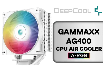 DeepCool GAMMAXX AG400 WH ARGB White CPU Air Cooler 220w TDP 6mm x 4 Heatipes All-White CPU Cooler 5V-3Pin Aura SYNC 120mm Fan PWM 75.89CFM Airflow for Intel LGA1700/1200/1151/1150/1155 AMD AM5/AM4 / AG400-WH-ARGB-SN / AG400-WH-ARGB-SN