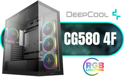 DeepCool CG580 4F V2 ATX Mid Tower Gaming Case - Black / 4 Built-in ARGB Fans / 360mm Radiator Support / No A-Pillar Design / 270° Glass Side & Front Panels / Supports ITX, Micro-ATX, ATX / USB 3.0 / USB Type-C / CG580-4F-V2