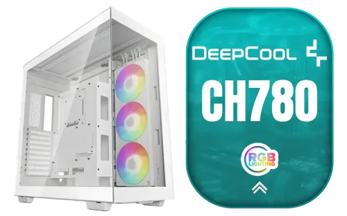 DeepCool CH780 WH White PC case ATX Dual-Chamber 3 x 140mm PWM ARGB Fans Pre-Installed Full Tower White Gaming PC Case Panoramic Glass Panels 420mm Radiator Support 4 x USB 3.0 Type-C I/O Panel / CH780-WH / CH780-WH + FREE DELIVERY !