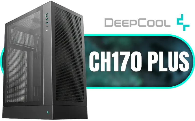 DeepCool CH170 PLUS Vertical Mid-Tower Case – Black / Supports Mini-ITX, Micro-ATX / High-Airflow Design with Mesh Panels / Transparent Tempered Glass / 240mm Radiator Support / USB 3.0 / Type-C / CH170 PLUS