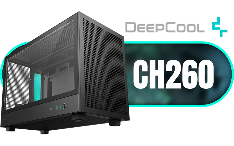 DeepCool CH260 ITX High-Airflow Computer Case- Black / Supports Mini-ITX, Micro-ATX / 360mm Radiator Support / High-Airflow Full Steel Mesh Panel / Tempered Glass Side Panel / CH260