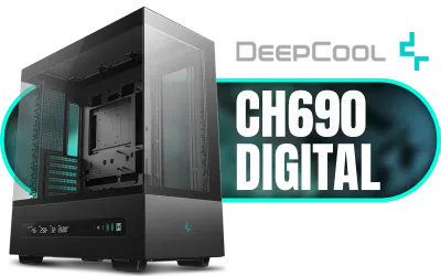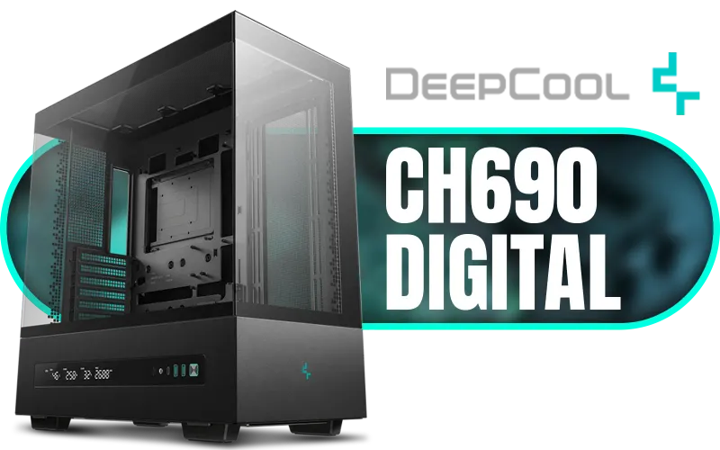 DeepCool CH690 DIGITAL PC Case – Black / Semi-Glass Panel Design / DIY Rear Mesh & Fan Bracket Support / Integrated Light Strip Slot / Supports Mini-ITX, Micro-ATX, ATX / 420mm Radiator Support / Digital Display / CH690-DIGITAL